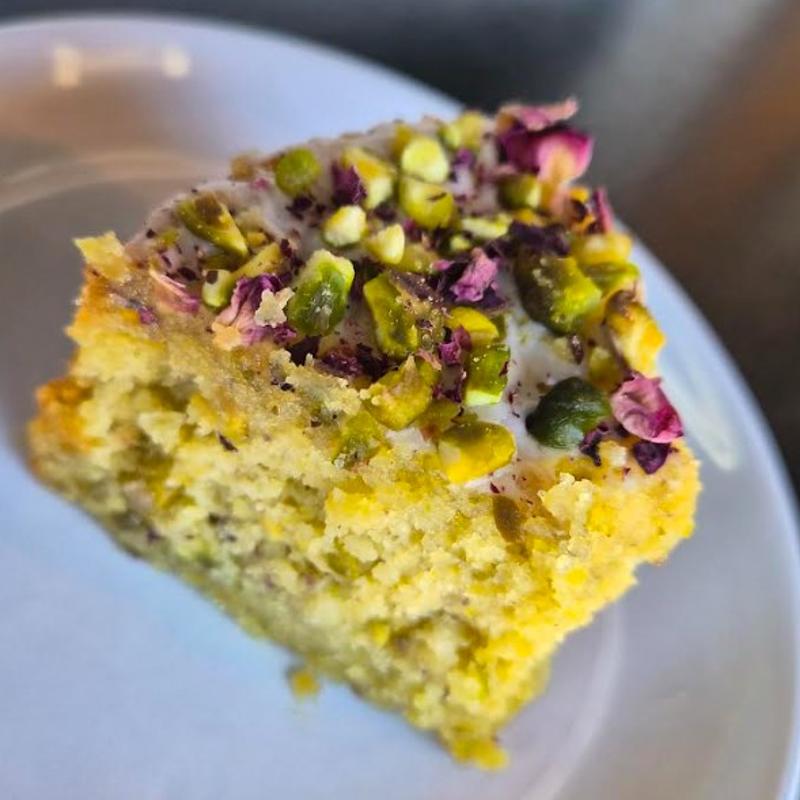 Made with organic Almond flour, Pistachios, Rose Petals, Cardamon, Egg and Lemon. Gluten Free, Vegetarian.